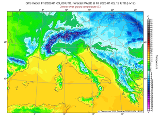 Nord: Nel settore settentrionale la pressione rimane relativamente contenuta. I venti da Libeccio soffiano con vigore sul Mar Ligure, dove si registrano mari molto mossi o agitati. Il cielo sarà irregolarmente nuvoloso durante la prima parte della giornata, tendendo a coprirsi localmente in serata. Sui rilievi alpini occidentali, in particolare in Val d’Aosta, sono attese nevicate deboli. Le temperature massime si mantengono fra 3 e 6 gradi su molte città, con punte fino a 11 gradi lungo la costa ligure, come a Genova.