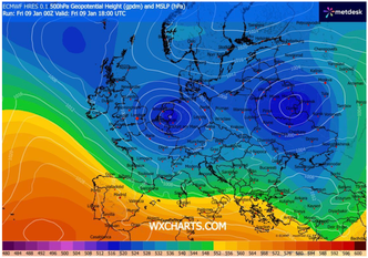 La tempesta Goretti sta attraversando l’Europa centro-settentrionale con una violenza che non lascia spazio a sottovalutazioni. Siamo di fronte a una classica ciclogenesi esplosiva, una delle configurazioni bariche più dinamiche e pericolose che si possano registrare in ambito meteorologico. Il fenomeno si verifica quando un minimo di bassa pressione si approfondisce di almeno 24 hPa in 24 ore: nel caso di Goretti, i modelli sinottici evidenziano un gradiente barico ancora più accentuato, con valori che stanno superando i 28-30 hPa in meno di un giorno, a testimonianza di una rapidissima intensificazione.