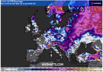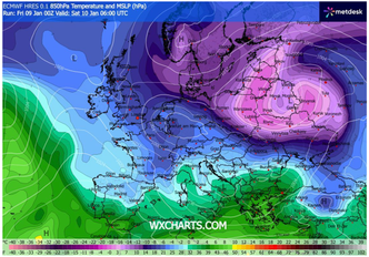 In Germania, l’effetto combinato del fronte freddo associato alla tempesta e di un cuscinetto di aria polare in discesa dalla Scandinavia sta determinando un’ondata di gelo particolarmente intensa. Le nevicate, pur con accumuli più contenuti rispetto al Regno Unito (fino a 15 cm al Nord), stanno paralizzando i principali snodi ferroviari, in particolare ad Amburgo e Brema, dove la Deutsche Bahn ha attivato oltre 14.000 operatori per il mantenimento dell’infrastruttura ferroviaria. Nel Sud, le previsioni indicano un crollo termico fino a -20°C durante il fine settimana, con potenziale rischio di black ice (ghiaccio invisibile) e gravi disagi alla circolazione.