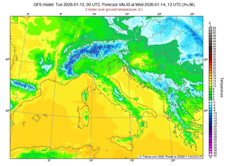 Nord: Nelle regioni settentrionali è presente un campo di alta pressione con venti deboli provenienti da sud che inducono cielo spesso molto nuvoloso o coperto in particolare sulle pianure e lungo la Liguria, dove non si escludono pioviggini isolate. Sulle aree montane permane una nuvolosità irregolare. Le temperature massime varieranno da 7°C a 13°C, con valori più alti attesi a Genova. I mari costieri risulteranno quasi calmi, in un contesto di tempo prevalentemente asciutto ma con una certa umidità dovuta alla nuvolosità compatta.