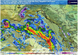 Si tratterà di piogge alluvionali, potenzialmente associate a temporali autorigeneranti e grandinate, mentre in alcune aree, soprattutto della pianura padana centro-occidentale, non è escluso lo sviluppo di fenomeni vorticosi, con la possibilità di tornado in pieno inverno.