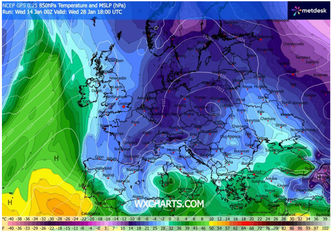 È in questo scenario che il GFS, nella sua emissione a scala sinottica su base grafica WXCHARTS, individua l’intrusione di una vasta massa d’aria fredda a 850 hPa (circa 1500 metri di quota) con isoterme fino a -10/-12 °C in ingresso dalla porta della Bora, pronta a interagire con sistemi depressionari in arrivo da ovest. Il nodo cruciale risiede proprio nell’interazione tra l’aria continentale e i cicloni atlantici, che potrebbero generarsi in serie e trovare sbocco nel cuore del Mediterraneo, dove l’apporto di umidità favorirebbe fenomeni anche a carattere nevoso.