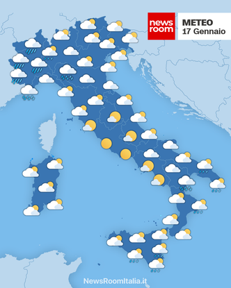 Italia – Per la giornata di sabato 17 gennaio, una perturbazione di origine atlantica interessa parzialmente l’Italia, determinando una pressione in lieve diminuzione soprattutto sulle regioni settentrionali. Le temperature si manterranno generalmente miti per il periodo, con valori diurni fino a 15-18°C al Centro-Sud. Il tempo sarà caratterizzato da precipitazioni diffuse sulle aree alpine e sulle regioni ioniche, mentre il resto del Paese presenterà un cielo complessivamente molto nuvoloso ma asciutto. I venti predominanti proverranno da sud, contribuendo a una generale ventilazione moderata, soprattutto lungo le coste.