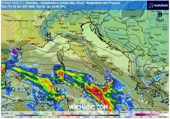 Le più recenti proiezioni modellistiche confermano che il sistema depressionario tenderà a stazionare per almeno 48 ore tra le Isole Maggiori e il basso Tirreno, richiamando correnti tese dai quadranti sud-orientali. Gli effetti più marcati si manifesteranno tra lunedì 19 e mercoledì 21 gennaio, con precipitazioni intense e venti molto forti soprattutto sulla Sardegna orientale, sulla Sicilia – in particolare il settore ionico e quello meridionale – e sulla Calabria. Su queste zone, le raffiche di vento da est-sudest potranno localmente superare i 100 km/h, con un significativo impatto anche sul moto ondoso: lungo le coste esposte dello Ionio si prevedono mareggiate con onde superiori ai 5 metri, potenzialmente in grado di causare danni e disagi nei settori costieri più vulnerabili.