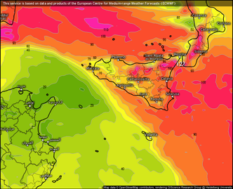 Particolarmente rilevante anche la ventilazione: i venti di Scirocco soffieranno con raffiche fino a 100 km/h, generando mareggiate di forte intensità lungo le coste ioniche. I bacini marittimi prospicienti la Sicilia orientale saranno molto agitati o grossi, con onde che localmente potranno superare i 6 metri. Questo comporterà condizioni critiche per le attività portuali, la navigazione marittima e le infrastrutture costiere, in particolare nei tratti di costa non protetti da adeguate opere di difesa. Le condizioni meteomarine previste assumono rilevanza eccezionale, come indicato anche dall’EFI (Extreme Forecast Index), che segnala scarti molto elevati rispetto alla climatologia media, con un’anomalia particolarmente marcata lungo il versante ionico.