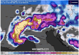 Una configurazione meteorologica potenzialmente molto interessante si delinea per sabato 24 gennaio, con la prospettiva di una nevicata da addolcimento su alcune aree del Nord Italia. La dinamica sinottica che potrebbe determinare questo tipo di evento vede l’arrivo di un flusso atlantico umido e mite, il quale, scorrendo sopra uno strato preesistente di aria fredda al suolo (il cosiddetto “cuscino freddo”), può generare precipitazioni nevose fino a quote molto basse, talvolta anche in pianura, nonostante temperature prossime allo zero o di poco superiori.