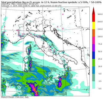 Il sistema depressionario centrato tra il Canale di Sicilia e il basso Ionio sta richiamando masse d’aria molto fredde dai Balcani, in una dinamica retrograda piuttosto rara per l’Italia meridionale. La sinottica prevede l’ingresso di aria fredda in quota che entro il pomeriggio di martedì 20 gennaio raggiungerà l’intero bacino sud-peninsulare, con isoterme a 850 hPa inferiori a 0°C sulla Calabria e prossime allo zero sulla Sicilia. Ciò si tradurrà in un drastico abbassamento della quota neve, rispetto alle aspettative iniziali.
