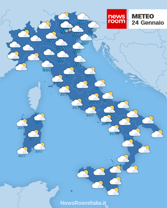 Nord: Sulle regioni settentrionali la pressione atmosferica bassa determina un cielo prevalentemente coperto o molto nuvoloso con piogge diffuse soprattutto sul Nordest. Neve sarà presente sulle aree montuose a quote relativamente basse, con possibilità di accumuli anche in pianura nel Piemonte serale, a causa dell’ulteriore peggioramento che si estenderà da ovest verso est. Le temperature massime si posizioneranno tra 5 e 10 gradi, con venti generalmente deboli ma in rinforzo serale. La nuvolosità presente ridurrà le schiarite, e la combinazione di pioggia e neve isolata renderà il tempo incerto.