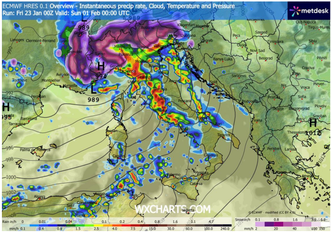 La perturbazione proseguirà la sua azione verso il Centro e il Sud ed il versante tirrenico centrale, in particolare Lazio e Campania, sarà bersaglio di rovesci a carattere temporalesco, mentre le zone interne appenniniche potranno ricevere le prime nevicate significative della stagione a quote via via più basse, intorno ai 900-1100 metri. Anche le Isole Maggiori saranno coinvolte, con precipitazioni più discontinue ma localmente di forte intensità.