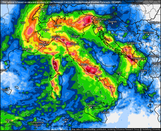 Secondo i modelli numerici più aggiornati, le aree maggiormente coinvolte dai fenomeni saranno la Liguria orientale, la Toscana, il Lazio e la Campania, con picchi pluviometrici superiori ai 100 mm entro la giornata di domenica. Sui rilievi appenninici esposti a occidente, specie lungo il crinale tosco-emiliano, umbro e laziale, lo stau accentuerà ulteriormente l’intensità delle piogge, con accumuli che localmente potranno superare i 150 mm. Anche le Alpi centro-orientali saranno interessate da precipitazioni copiose, in particolare nei settori di confine e nelle valli prealpine, contribuendo ad aumentare il manto nevoso in quota.