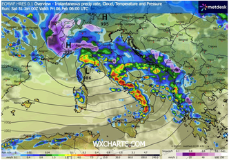 L’avvio di febbraio conferma una tendenza meteorologica già osservata nella seconda metà di gennaio: l’Italia resta esposta a ripetuti affondi depressionari di origine nord-atlantica, i quali non solo non accennano ad attenuarsi, ma al contrario sembrano intensificare il loro impatto a causa dell’interazione con il bacino del Mediterraneo. Non si tratta di semplici fronti perturbati oceanici, ma di veri e propri sistemi ciclonici alimentati da energia termica e umidità aggiuntiva fornita dalle acque insolitamente calde del Mare Nostrum.