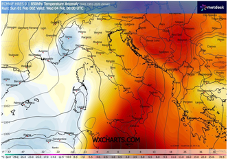 Il quadro sinottico mostra un ampio sistema depressionario in approfondimento sull’Atlantico, il cui fronte caldo, in fase di pregressiva traslazione verso l’Europa occidentale, sta innescando un vigoroso richiamo meridionale. L’Italia si troverà esattamente lungo il settore ascendente di questa circolazione ciclonica, con venti di scirocco e libeccio pronti a canalizzare aria calda dal Nord Africa verso le nostre regioni centro-meridionali.
