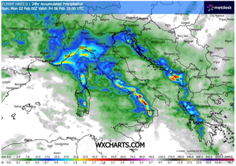 Già dalla serata di lunedì 2 febbraio è atteso l’approssimarsi del primo impulso perturbato, che interesserà inizialmente le regioni di Nord-Ovest, in particolare Liguria, Piemonte e Valle d’Aosta. Da martedì 3 il maltempo entrerà nel vivo, coinvolgendo l’intero Settentrione e parte del Centro. Le precipitazioni risulteranno localmente intense, soprattutto sul comparto ligure di levante, sull’alta Toscana e sul Friuli Venezia Giulia, dove non si escludono nubifragi. Neve copiosa cadrà lungo l’intero arco alpino, generalmente a partire dai 500–600 metri di quota, ma con possibili sconfinamenti a quote prossime alla pianura sul basso Piemonte, grazie alla presenza di un cuscinetto freddo nei bassi strati.