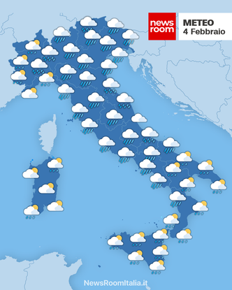 Italia – Una perturbazione in transito sull’Italia determina condizioni di marcata instabilità atmosferica domani, mercoledì 4 febbraio. Il campo di pressione si mantiene su valori contenuti favorendo precipitazioni irregolari, più intense sulle regioni tirreniche e sul Friuli Venezia Giulia, mentre temperature massime si attestano tra 6°C e 17°C con neve prevista in Appennino settentrionale dai 900-1400 metri.