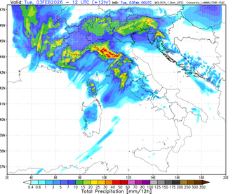 La dinamica più rilevante si attiverà tuttavia tra la tarda serata e le prime ore di mercoledì 4 febbraio, con l’ingresso di una seconda perturbazione atlantica, più compatta e strutturata, che riporterà condizioni di forte maltempo su molte regioni. Il nuovo impulso instabile raggiungerà dapprima il Nord Italia, coinvolgendo nuovamente le regioni già interessate dal primo passaggio perturbato, e tenderà successivamente a espandersi verso Sud, interessando Campania, Puglia, Basilicata e, nel prosieguo, anche la Calabria tirrenica. Attese nuove nevicate su Alpi e Prealpi, con quota neve inizialmente ancora bassa, in risalita solo nelle ore successive per il temporaneo richiamo di aria più mite nei bassi strati.