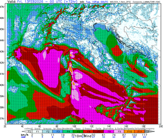 Le regioni più esposte sembrano al momento quelle del Centro-Nord, dove non si esclude la possibilità di nevicate a partire da quote collinari, localmente anche più basse, specie laddove le precipitazioni si presenteranno più intense e persistenti. Particolare attenzione andrà riservata alla ventilazione: le attuali simulazioni modellistiche indicano infatti la probabile attivazione di forti venti dai quadranti settentrionali e nord-occidentali, con raffiche che potrebbero localmente superare i 70–80 km/h, in special modo sui versanti esposti e lungo le coste del Tirreno centrale e della Sardegna.