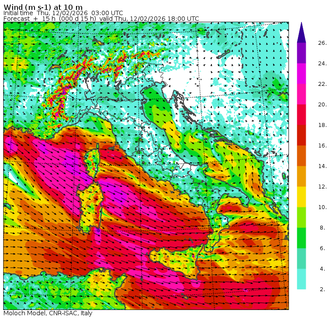 Le regioni più esposte saranno la Sardegna e la Sicilia, oltre a gran parte del versante tirrenico centro-meridionale, in particolare tra il Lazio, la Campania e la Calabria tirrenica. La velocità media del vento in queste zone sarà compresa tra gli 80 e i 100 km/h, ma sulle creste montuose, nei passaggi vallivi e nelle aree sottoposte a effetti di compressione orografica – come accade spesso nell’entroterra sardo – si potranno registrare raffiche ben oltre i 110-120 km/h. Sulle cime più esposte della Barbagia e dell’Ogliastra, non sono da escludere picchi che sfiorino o superino i 150 km/h, un valore che rientra a pieno titolo nella scala dei venti da uragano.