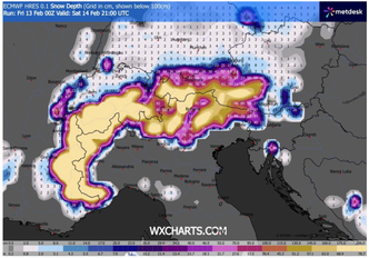Per quanto riguarda la neve, le precipitazioni solide interesseranno le Alpi occidentali con quota neve stimata tra i 1000 e i 1200 metri, valori che potrebbero localmente scendere nelle vallate più chiuse in presenza di intensità elevata. Sull’arco alpino centro-orientale, così come sull’Appennino settentrionale e parte di quello centrale, la neve cadrà a partire da quote superiori, generalmente comprese tra i 1300 e i 1500 metri. Non si escludono imbiancate più generose sui crinali emiliani e marchigiani, specie nei settori esposti alle correnti sud-occidentali.