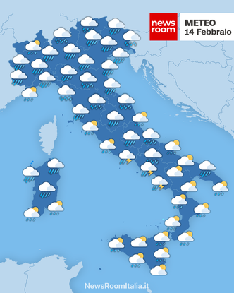 Italia – Per sabato 14 febbraio 2026 si prevede una giornata caratterizzata da un generale maltempo a causa di una profonda area di bassa pressione attiva sul territorio nazionale. La pressione atmosferica si mantiene su valori bassi favorendo precipitazioni diffuse, con temperature massime che oscillano generalmente tra 7 e 17 gradi. Venti forti di Bora al Nordest e di Scirocco e Maestrale su molte regioni centrali e meridionali, con mari da molto mossi a localmente agitati, in particolare sul Tirreno.