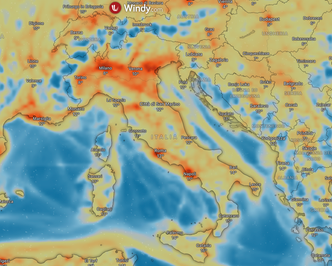 Aria insalubre è prevista anche lungo il medio e alto Adriatico, dove nei pressi del Delta del Po si stimano valori tra 50 e 60 microgrammi per metro cubo. Superamenti del limite di 25 microgrammi sono attesi inoltre in diverse aree del Centro: fino a 40 microgrammi nell’Anconetano, tra 30 e 35 microgrammi nella Valle dell’Arno, nell’area di Roma e fino al Napoletano. Nel resto del Centro la situazione dovrebbe risultare relativamente migliore, con valori generalmente entro i limiti, salvo sforamenti locali e temporanei.
