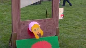 Nel filmato si vede un partecipante travestito da boia, con felpa nera e passamontagna, che impugna un ascia di cartone. Sul patibolo compare il disegno del volto della premier con la testa inserita nell apertura della ghigliottina, pronta per una simbolica esecuzione. Dopo il gesto della decapitazione, la testa disegnata cade in un cesto circondato da vernice rossa. La scena si conclude con l esultanza del pubblico presente.