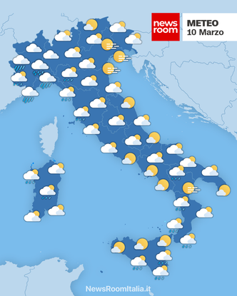 Italia – La giornata del 10 marzo vede una debole flessione della pressione sulle regioni settentrionali, mentre Centro e Sud rimangono più stabili. Mattinata caratterizzata da precipitazioni immediatamente sul Nord-Ovest e condizioni asciutte ma nuvolose altrove; dal pomeriggio aumentano gli addensamenti convettivi lungo l’Appennino con rovesci su alcune aree della Toscana, sulla Sardegna settentrionale e sulla Sicilia settentrionale. Le temperature massime si collocheranno in genere tra circa 11°C e 18°C; i venti spireranno prevalmente dai quadranti meridionali e i mari si presenteranno generalmente poco mossi.