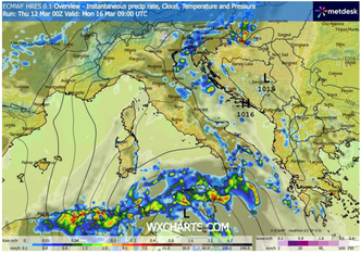 Un vortice in formazione sulla Costa Azzurra darà il via, a partire da sabato 14 marzo, a una fase di maltempo organizzato destinata a coinvolgere gran parte dell’Italia. Il ciclone, alimentato da aria più fredda in discesa dal nord Europa, imboccherà rapidamente la rotta del Tirreno, dove troverà acque ancora relativamente miti e un forte gradiente barico: condizioni ideali per una rapida intensificazione.