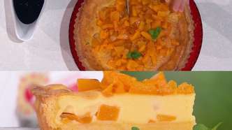 Un dolce che racconta estate e comfort: una frolla burrosa e friabile che accoglie pezzi generosi di pesche sciroppate immersi in un ripieno cremoso a base di uova e panna, il tutto accompagnato da una salsa vellutata al cacao e da pesche caramellate per la decorazione. Semplice ma d’effetto, perfetto per concludere un pranzo in famiglia o per una merenda golosa.