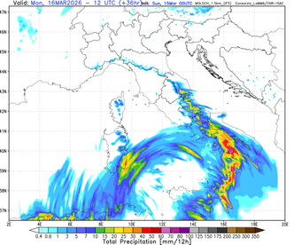 Il minimo di bassa pressione lambirà dapprima la Sardegna, per poi concentrarsi tra il Canale di Sardegna e il Canale di Sicilia, dove si intensificherà ulteriormente diventando un autentico ciclone mediterraneo. In questa posizione il sistema è previsto rimanere bloccato almeno fino a martedì.