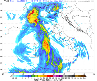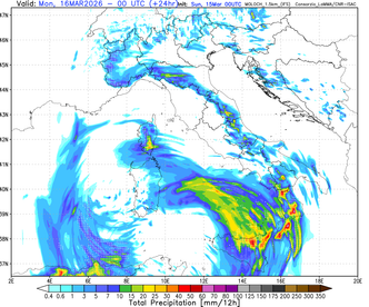 Temporali si stanno verificando sulla Sicilia occidentale, mentre piove sulla Sardegna orientale. Le regioni tirreniche centrali sono in attesa di un progressivo peggioramento con piogge abbondanti e temporali nel corso del pomeriggio. La perturbazione è associata a un vortice di bassa pressione che nel corso della domenica si posiziona tra la Sardegna e il Basso Tirreno, alimentando i fenomeni verso il Sud peninsulare e la Calabria.