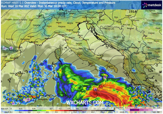 La settimana compresa tra il 23 e il 30 marzo 2026 si preannuncia tra le più perturbate degli ultimi mesi per l’Italia. Le ultime elaborazioni del modello europeo ECMWF — il più affidabile strumento di previsione meteorologica a medio termine — confermano un pattern barico anomalo per il periodo, con una successione di affondi depressionari diretti verso il Mediterraneo centrale, destinati a insediarsi con persistenza sul Centro-Sud della Penisola. La configurazione atmosferica, ben strutturata e difficile da scalfire, potrebbe protrarre i suoi effetti anche nella prima settimana di aprile.