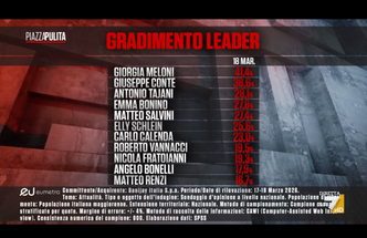 Il dato più significativo riguarda Giorgia Meloni, che torna al primo posto nella classifica dei leader più apprezzati con il 41,1% di gradimento. Nella settimana precedente la Presidente del Consiglio era stata superata da Giuseppe Conte, che si conferma comunque al secondo posto tra i leader in termini di consenso personale.