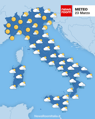 Italia – La giornata di lunedì 23 Marzo vedrà un gradiente di pressione con valori più contenuti al Centro-Sud e un campo più stabile sulle regioni settentrionali. Le condizioni meteorologiche risulteranno generalmente calme al Nord con cieli sereni o poco nuvolosi e massime attorno a 15-17°C, mentre sul resto della penisola l’atmosfera tenderà a diventare instabile nel corso della giornata: al mattino possibili piovaschi irregolari, in intensificazione nel pomeriggio con rovesci anche moderati e locali temporali. La quota neve si attesta intorno ai 1.100 metri nelle aree appenniniche più interessate.