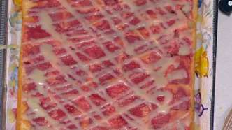 - Versare delicatamente la pastella sulle fragole: fate scorrere la crema piano in modo che riempia gli spazi ma le fragole rimangano visibili in superficie.