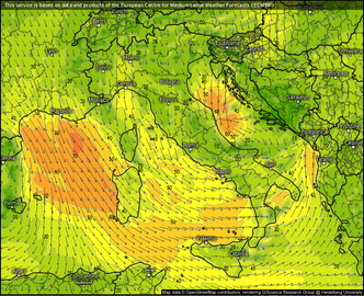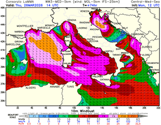 La perturbazione raggiungerà la massima intensità nella giornata di giovedì 26 marzo. La Sardegna sarà tra le zone più colpite, con raffiche che supereranno i 100 km/h. In Campania le raffiche potranno raggiungere gli 80 km/h, mentre sulla Lombardia occidentale sono attesi venti di foehn. Sull’alto Adriatico si formerà un vortice ciclonico con Bora violenta.
