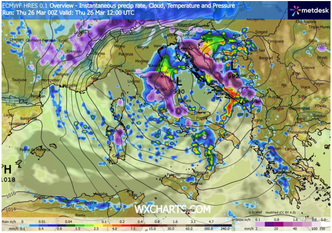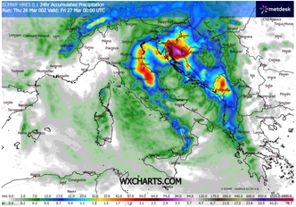 Tra la serata e la notte il vortice tenderà ad approfondirsi ulteriormente sul Sud Italia, mantenendo condizioni di marcata instabilità sulle regioni adriatiche e meridionali, mentre il Nord e le regioni tirreniche centro-settentrionali beneficeranno di un progressivo miglioramento grazie a un aumento della pressione atmosferica.
