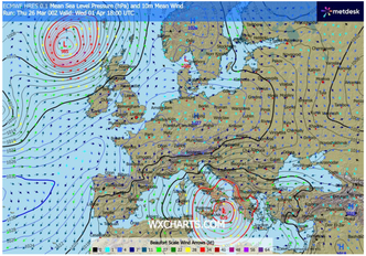A partire da lunedì 30 marzo, un vortice depressionario di matrice nordeuropea si approfondirà rapidamente tra la Francia e il Nord Italia, alimentato da aria più fredda in discesa attraverso la Porta del Rodano. L’ingresso di questa massa d’aria instabile sui mari relativamente più caldi favorirà un rapido sviluppo ciclonico sul Mediterraneo occidentale, con un gradiente barico in intensificazione. Le prime precipitazioni interesseranno le regioni settentrionali, in particolare Lombardia, Veneto ed Emilia-Romagna, con fenomeni a tratti intensi e localmente temporaleschi.