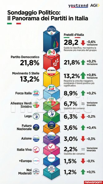 - Fratelli d’Italia: 28,2% (-0,6%)