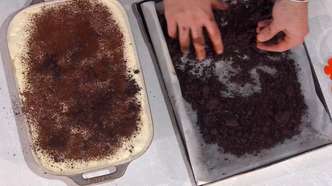 - Finitura e servizio: poco prima di servire, spolvera abbondantemente la superficie del tiramisù con cacao amaro setacciato. Distribuisci infine il crumble ormai freddo sulla superficie per aggiungere la nota croccante. Puoi completare con scaglie di cioccolato se desideri.