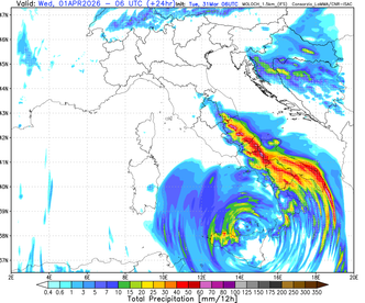 Una profonda depressione in lenta evoluzione verso est porterà nelle prossime 48 ore condizioni di maltempo severo sul medio versante adriatico e sulle regioni meridionali italiane. Le precipitazioni più intense sono attese tra mercoledì 1 e giovedì 2 aprile, con un miglioramento che non si profila prima della serata di giovedì o addirittura di venerdì 3 aprile.