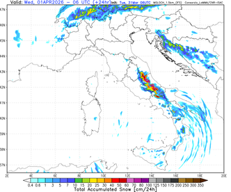 Nella giornata di mercoledì 1 aprile, secondo le elaborazioni dei modelli di calcolo, il maltempo più significativo si concentrerà tra il sud delle Marche, l’Abruzzo, il Molise, la Puglia e la Lucania, dove i quantitativi pluviometrici potrebbero raggiungere e superare i 100 millimetri nell’arco di 12 ore. Rovesci intensi interesseranno anche la Calabria e la Sicilia occidentale, mentre le precipitazioni risulteranno meno frequenti sulla Sicilia centro-orientale e sulla Calabria ionica.