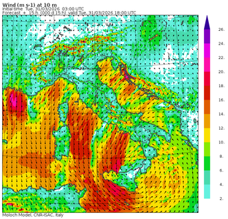 La fase più critica è prevista per la giornata di oggi martedì 31 marzo, quando il gradiente barico in accentuazione determinerà raffiche di vento localmente superiori ai 100 km/h sull’arco alpino centro-occidentale. Le aree maggiormente esposte saranno Valle d’Aosta, Piemonte, Lombardia e Alto Adige, dove il flusso settentrionale, interagendo con la barriera alpina, attiverà episodi di Föhn particolarmente intensi. Questo vento di caduta, secco e caldo per compressione adiabatica, riuscirà a sfondare verso la Pianura Padana, investendo direttamente centri urbani come Milano, Torino, Varese e Como. In tali contesti si prevedono improvvisi rialzi termici, drastico calo dell’umidità relativa e visibilità eccezionalmente elevata, ma accompagnati da raffiche potenzialmente dannose.