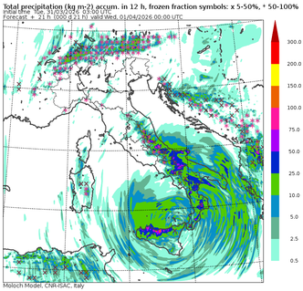 Tra mercoledì 1 e giovedì 2 aprile il minimo depressionario tenderà a traslare verso il Mediterraneo centrale, mantenendo condizioni di spiccata instabilità. I venti assumeranno una rotazione ciclonica attorno al minimo, disponendosi in senso antiorario e risultando ancora intensi su gran parte del territorio nazionale. Le regioni meridionali saranno particolarmente esposte a fenomeni convettivi anche intensi, con il rischio di nubifragi legati all’elevata energia potenziale disponibile. Sul resto del Paese persisteranno correnti settentrionali che manterranno un contesto termico fresco, con valori inferiori alle medie stagionali.