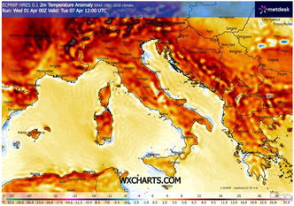 Questo tipo di configurazione rientra nella variabilità tipica del mese di aprile, periodo di transizione in cui si possono verificare rapide alternanze tra impulsi freddi tardivi e prime fiammate di stampo quasi estivo. Tuttavia, l’entità dell’anomalia prevista risulta significativa e meritevole di attenzione in ottica climatologica.