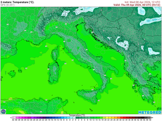 Nord: La pressione rimane stabile sul comparto settentrionale: la mattinata si aprirà con cieli in prevalenza sereni o lievemente velati e venti deboli variabili. Nel corso del pomeriggio è atteso un aumento della copertura nuvolosa sui settori orientali, in particolare su Veneto e Friuli Venezia Giulia, dove le nubi risulteranno più compatte senza tuttavia dare luogo a fenomeni significativi. Sulle Alpi e sulle pianure occidentali il tempo resterà prevalentemente asciutto e soleggiato. Le temperature massime andranno dai circa 16°C lungo le coste di Venezia e Trieste fino a punte intorno ai 25–26°C nelle aree interne e nelle valli più riparate (es. Bolzano); le minime mattutine saranno generalmente contenute tra 7°C e 13°C. I venti saranno in prevalenza deboli; i mari prospicienti le coste settentrionali calmi o poco mossi.
