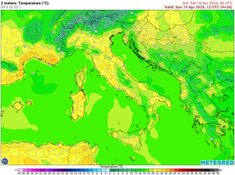 Centro Italia e Sardegna: Sulle regioni centrali e in Sardegna la pressione rimane sostanzialmente stabile: mattinate con cieli sereni o poco nuvolosi e condizioni in prevalenza asciutte. Nel corso del pomeriggio aumenterà una nuvolosità innocua, più marcata sulle zone interne, senza fenomeni significativi attesi. Venti deboli meridionali, mari per lo più calmi. Il clima risulterà piacevole e localmente quasi estivo sulle aree tirreniche di Toscana, Lazio e nella bassa Umbria; massime a carattere tipico primaverile con valori compresi tra circa 20°C nelle coste adriatiche e fino a 25–26°C nelle città del centro‑ovest e in Sardegna.