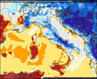 Nel corso di martedì 21 il raffreddamento si farà più evidente. Le temperature massime e minime potranno registrare valori inferiori anche di 4-6°C rispetto ai giorni precedenti, con anomalie più marcate sul Nord-Ovest e lungo il medio Adriatico. In queste aree, l’afflusso di aria più fredda sarà accompagnato da una maggiore variabilità atmosferica, con possibili episodi di nuvolosità irregolare e locali precipitazioni.