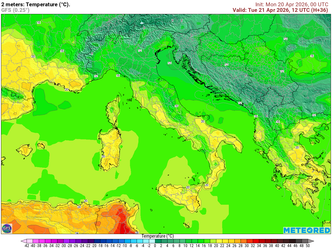Centro Italia e Sardegna: Sulle regioni centrali la bassa pressione favorirà condizioni instabili soprattutto lungo la fascia adriatica centro-meridionale: piogge e temporali interesseranno Marche e aree di Abruzzo, con fenomeni in estensione nel corso del pomeriggio verso Umbria e Toscana interna; sono possibili locali grandinate associate ai nuclei temporaleschi. La Sardegna si mantiene invece più asciutta con cieli sereni o poco nuvolosi sulla maggior parte dell’isola. I venti sono previsti deboli, di direzione variabile, e i mari generalmente poco mossi. Le massime andranno dai circa 16°C di Ancona fino a 23°C a Roma; in Sardegna picchi più elevati, con Cagliari vicino ai 26°C.
