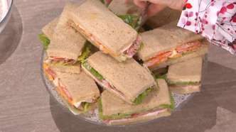 - Finalizzazione: copri con un'altra fetta di pane, premi leggermente per compattare il tramezzino, quindi taglia in triangoli o rettangoli secondo la forma desiderata. Conserva i tramezzini pronti in frigorifero, coperti con pellicola, fino al momento di servire.