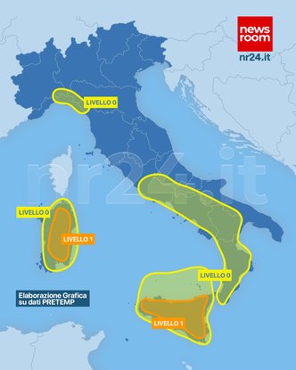 Al Nord il quadro resterà relativamente stabile: tra Liguria, Emilia-Romagna, basso Veneto e settori alpini si prevedono soltanto rovesci isolati e poco organizzati, con livello di allerta 0 e fenomeni non temporaleschi o marginalmente convettivi.